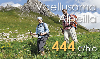 Vaellusloma Alpeilla 444 €/hlö
